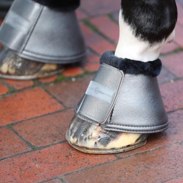 Stødabsorberende klokker med blød kant i imiteret pels, så de ikke skarver hesten i kodebøjningen.
