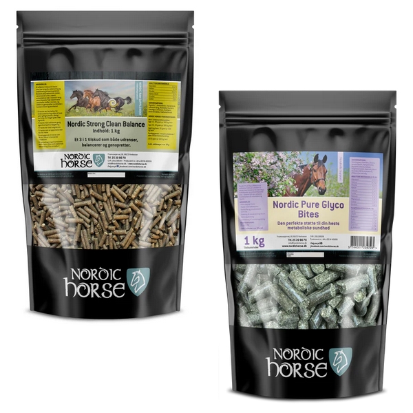 Forårspakke 1 med Nordic Strong Clean Balance + Pure Gluco Bites fra Nordic Horse.