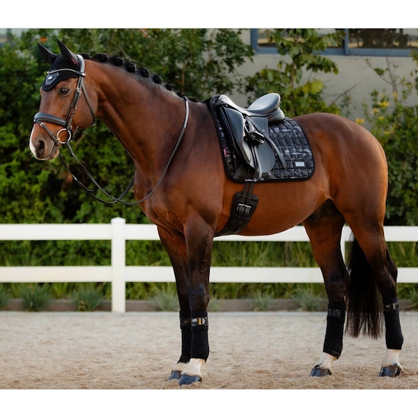LeMieux Adour Dressurunderlag i sort med metallic effekt.