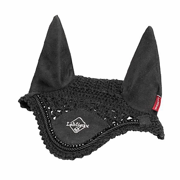 Suede over ørerne og foran på den hæklede del. Samt lille LeMieux Logo broderet på fronten.