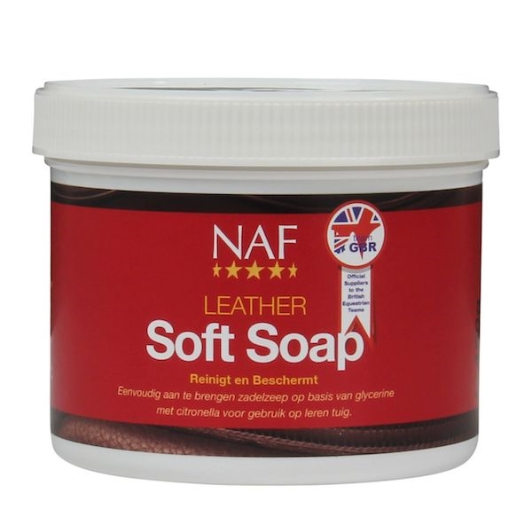 Brug en hårdt opvredet svamp til at gnide NAF Leather Soft Soap ind, for at fjerne snavs.