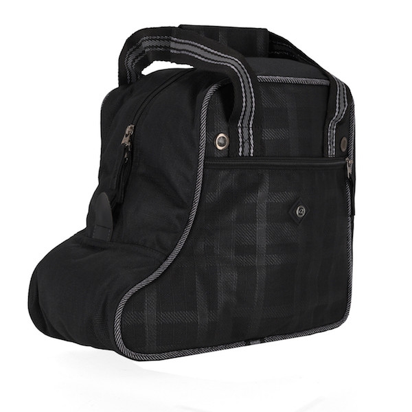 Støvletasken er i QHP's kollektions farven Midtnight Sort. En helt klassisk sort med skotsktern, i en blanker overflade på det sorte, så det ses når lyset falder på overfladen af tasken.