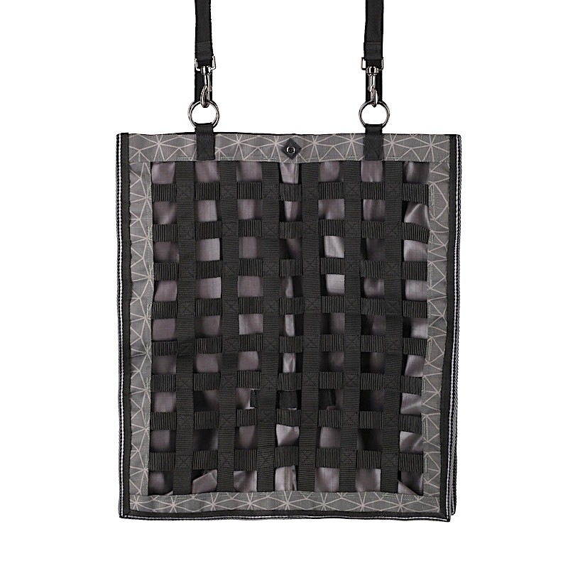 Strop på bagsiden som kan bruges til at fastgøre høposen i, så den ikke svinger rundt når hesten trækker ud i grovfoderet.