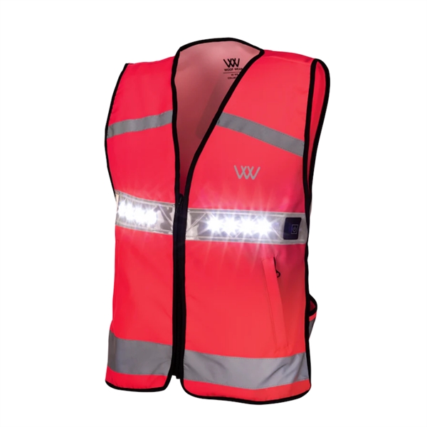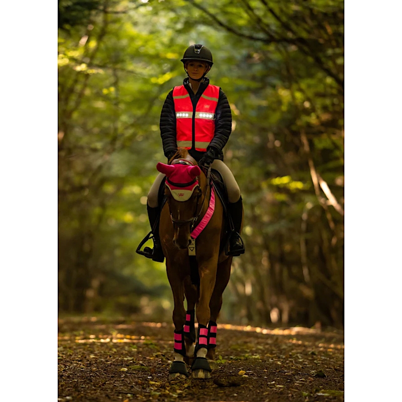 Bevæg dig sikkert i skumring, mørke og vinterdage med Woof Wears Hi Vis Riding Vest i pink. En refleksvest med-LED lys både for og bag. Udviklet specifikt til ryttere. Vesten kombinerer hi‑vis tekstil, brede refleksbånd og aktiv belysning for at skabe en tydelig 360° synlighed, som giver de bedste forudsætninger for at bilister ser dig tidligst muligt.